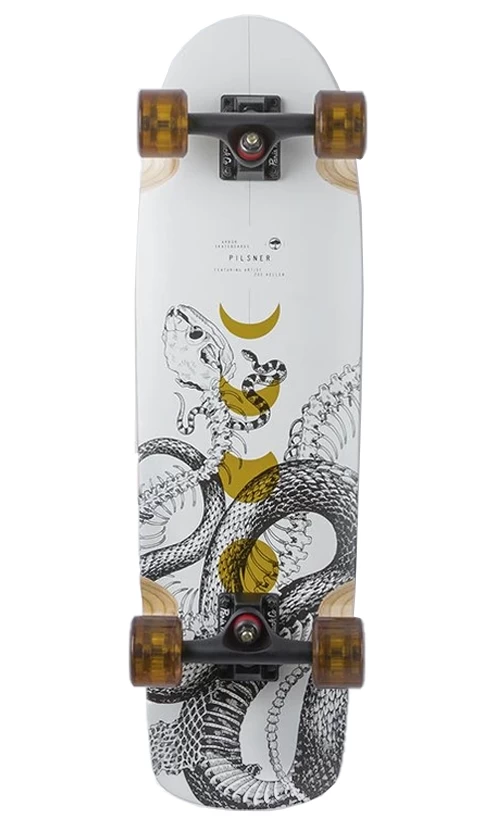Part of the Bamboo series by Arbor, the Pilsner cruiser has a mellow concave and a wide standing platform. With a bamboo finish over 7-ply maple, mini cruiser wheels, and incredible artwork by Zoe Keller, this cruiser is comfortable, fun, and functional.
