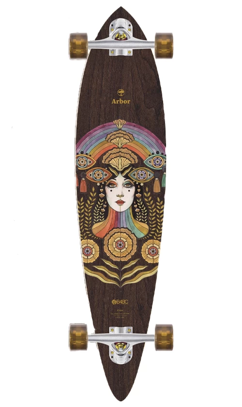 A compact pintail with an extended wheelbase and mellow flex for around town cruising and lower speed carving.