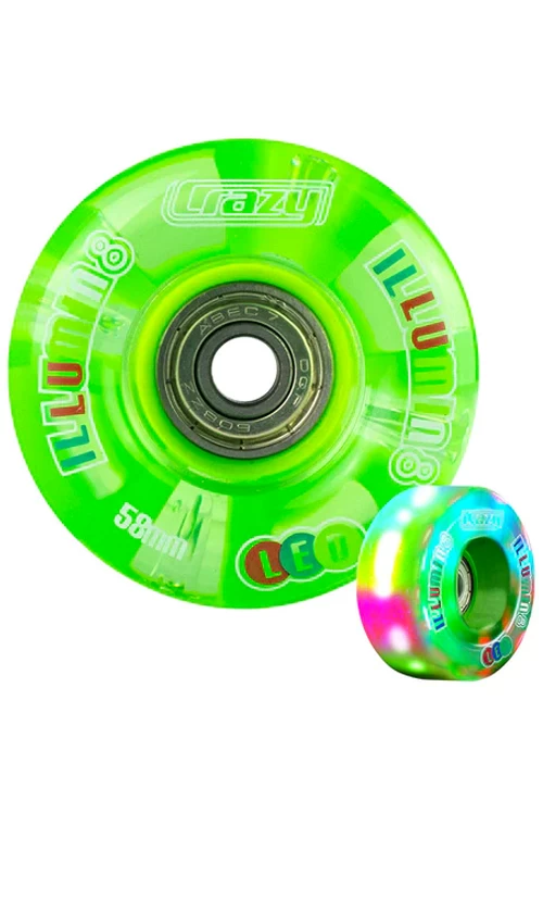 Crazy Illumin8 LED Light Up Wheels 2pk 58mm Green