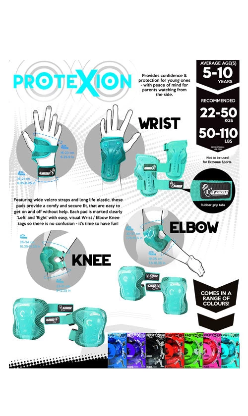 Crazy ProteXion Kids Tri-Pack Protective Gear Teal