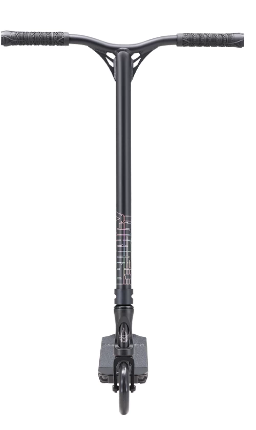 The deck includes high quality grip tape and durable components – nylon front plate, rear inserts, and nylon brake systems. Topping the scooter for Series 9 is the high-density aluminium Reaper style bars wrapped in a Two Bolt 6061 Aluminium oversized clamp and TPR Hand Grips.