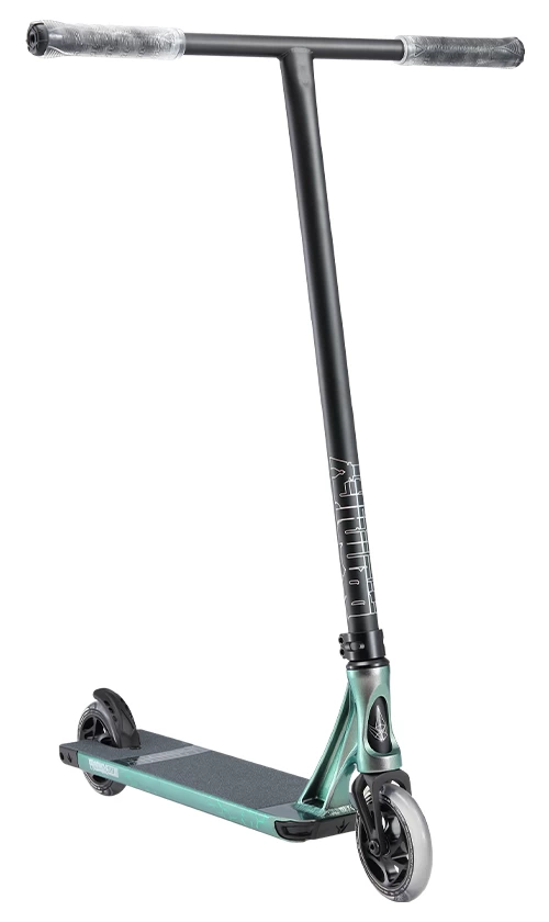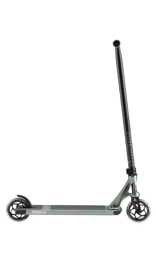 The Prodigy Series 9 Street edition range is available with more street-specific components than its original Prodigy counterpart. This classic stunt scooter features T Style Thermal bars, Boxed Ends &ย Wider, and longer decks. This range is suited to the intermediate to advanced rider ready to progress within the street scene. The Prodigy Street Edition includes all the great upgrades to the standard Prodigy with some exclusively street-specific components. The Prodigy 6061-T6 Extruded Aluminium deck with a base cut out is longer and wider and includes our interchangeable Nylon Boxed Ends. Topping the scooter is 4130 Cro-Mo T style Thermal bars wrapped in a Two Bolt 6061 Aluminium standard clamp and TPR Hand Grips. The pro complete is rolling on 120mm x 24mm GAP core wheels with the best 86a grade Polyurethane and ABEC 9 bearings. The NEW Diamond IHC Forks are compatible with up to 125mm x30mm scooter wheels.