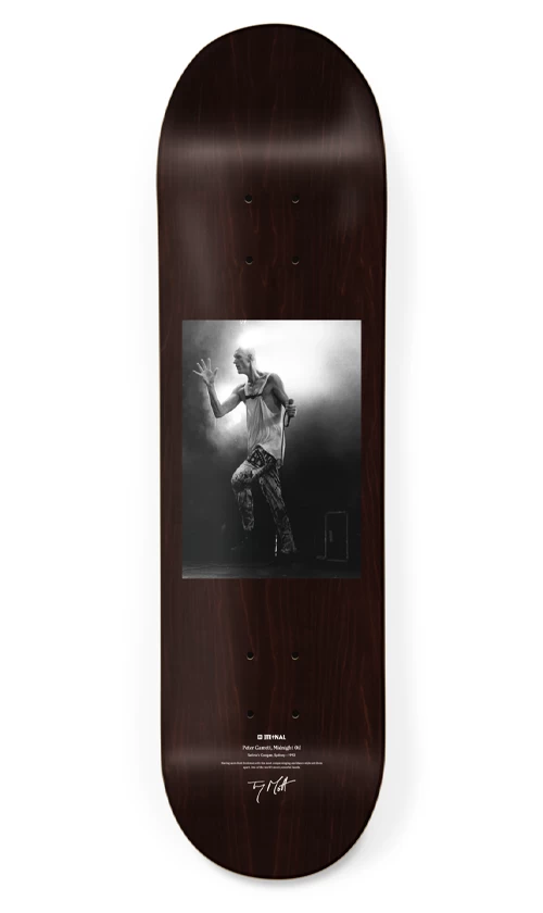 Eternal Skateboardsย are honoured to work together withย Tony Mottย to bring you this deck of Peter Garrett who is one of Australiaโs finest rock artists.