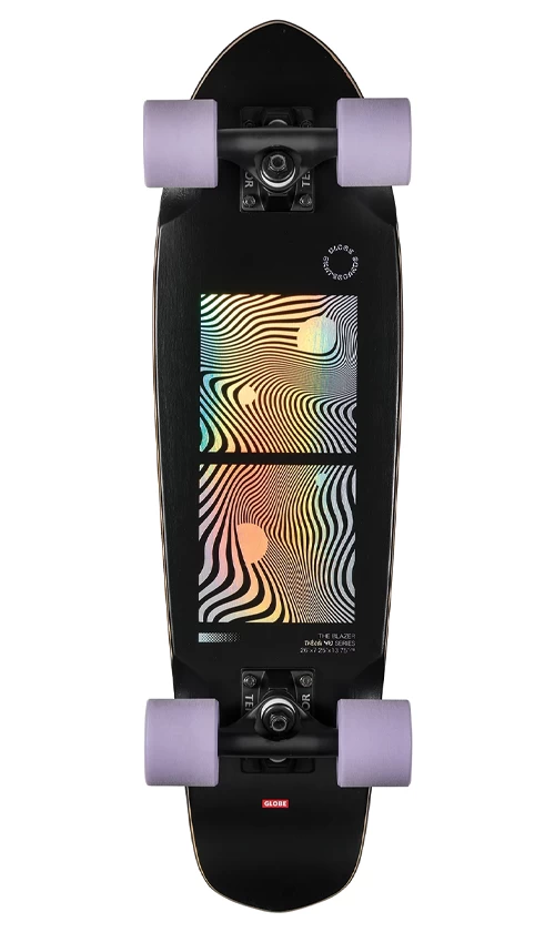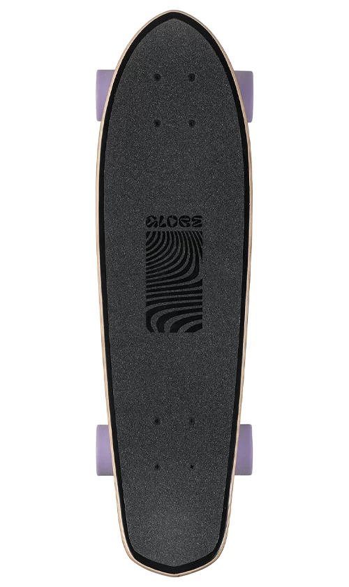 Our favorite mini Resin-7 hard rock maple diamond-tail cruiser with soft conical wheels. The Blazer in Black/Purple is a compact size cruiser board withย a mellow concave deck constructed from Resin 7 hard rock maple, featuringย colorful, prism foil-based art. This small-size cruiser board also featuresย 4.25โ Tensor alloy trucks with grade-8 kingpins and high-rebound urethane bushings. Globe’s 62mm 78a high-rebound, soft conical cruiser wheels are sticky enough to hold turns and slide while allowing for a smooth and stable ride.