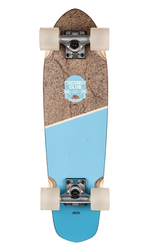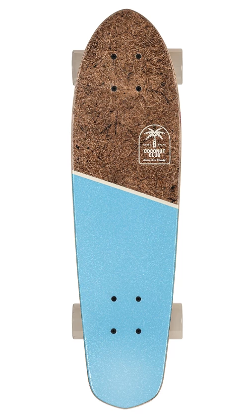 The Blazer in Coconut/Sky features a deck constructed from up-cycled coconut husk which is a waste stream product, and sustainably sourced bamboo core! Featuring mellow concave with kick tail,ย 4.25โ Tensor alloy trucks andย 62mm 78a Conical Cruiser wheels.ย