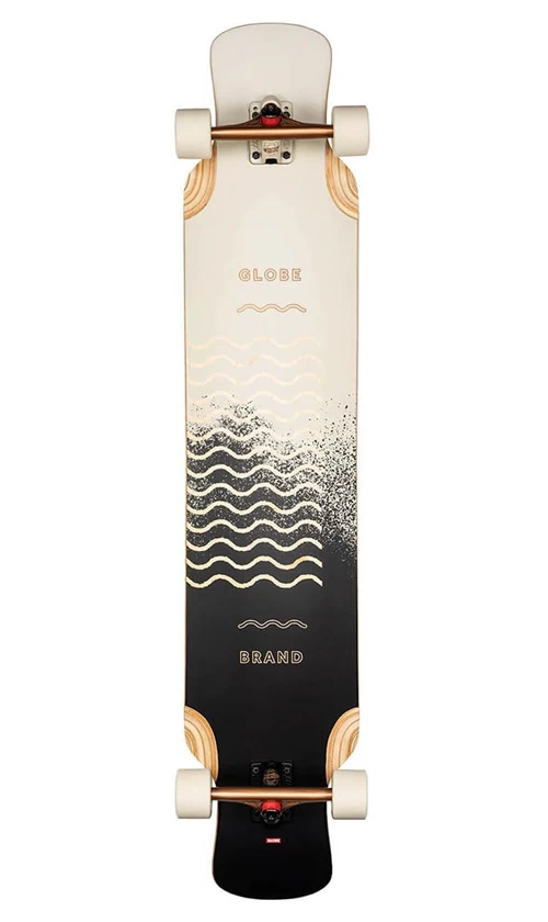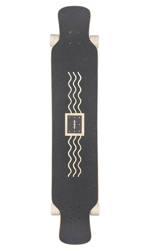 The Geminon XL is a progressive longboard made of Resin-8 hard rock maple. It is a symmetrical freeride/freestyle board which features a slight side-to-side concave, 180mm Slant aluminum reverse kingpin trucks and 65mm Conical 78a wheels. Also, it has a die-cut black griptape and art knockouts to wood.