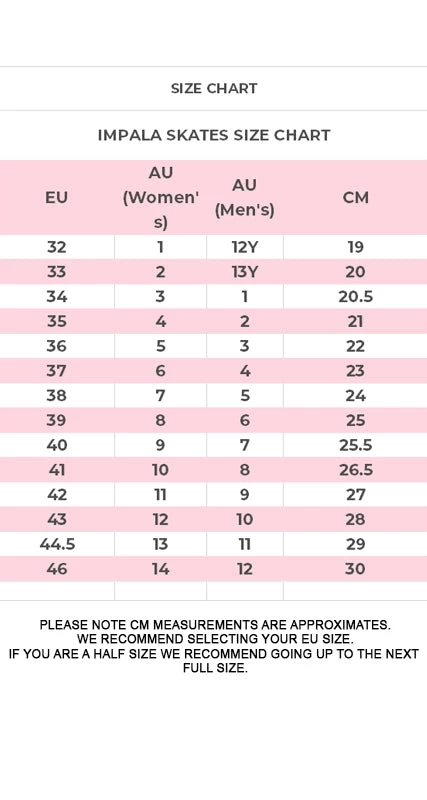 The Impala Inline Skates are a classic style retro skate perfect for cruising the beach or shredding at the rink. These particular skates are a great entry-level with the durable plastic outer boot with a comfortable, breathable, padded boot liner perfect to skate in with confidence.