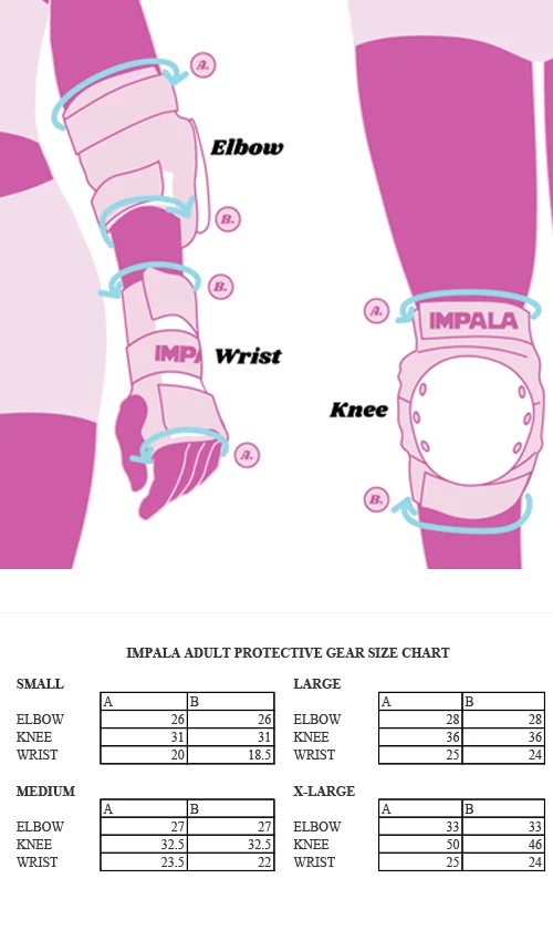 The Impala Protective Pad Set includes wrist, elbow and knee pads.