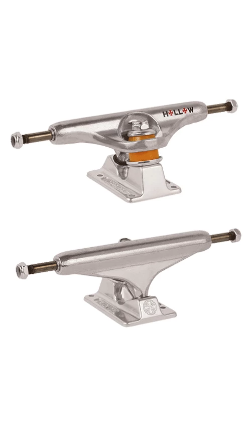 These Hollow Indies are the same tough, stable, tall truck that you would expect with Independent trucks, nowย 10% lighter due to the hollow axle and hollow kingpin.ย