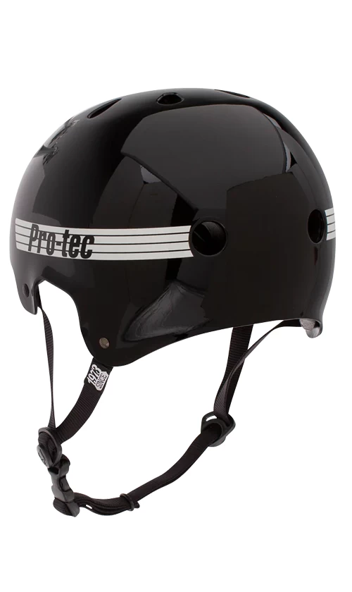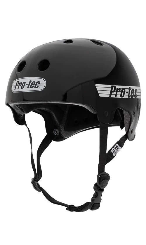 The Pro-Tec Old School Certified Helmet Gloss Black was modified from the original 1973 Full-Tec and features a retro shape that sits low on your head, offering great impact protection. The premium heat-sealed liner keeps you comfortable and the 11 open vents keep you cool. The more round shape practically molds to any shape head.