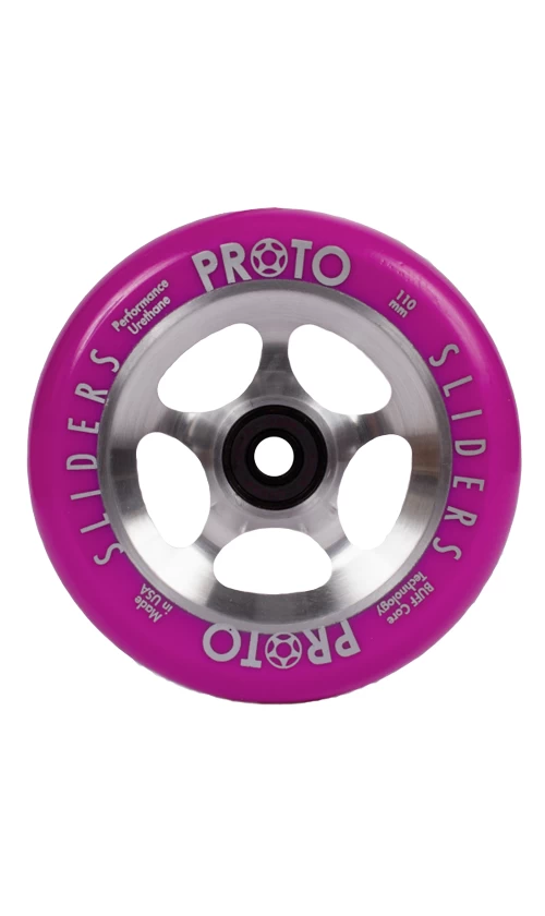 Neon Slider Urethane on RAW 6061 Billet Aluminum Cores, reminiscent of our ultra-popular DAY-GLO Series from 2015, are sure to Brighten up your next scooter build! PROTO Sliders are the strongest, most responsive wheel urethane on the market and coming in 6 colors, there is sure to be a perfect option for your color scheme!