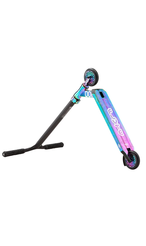 This Pro Scooter is the lightest on the market at present. It has a unique triple concave deckย and specifically designed for a lighter and narrower set-up.ย