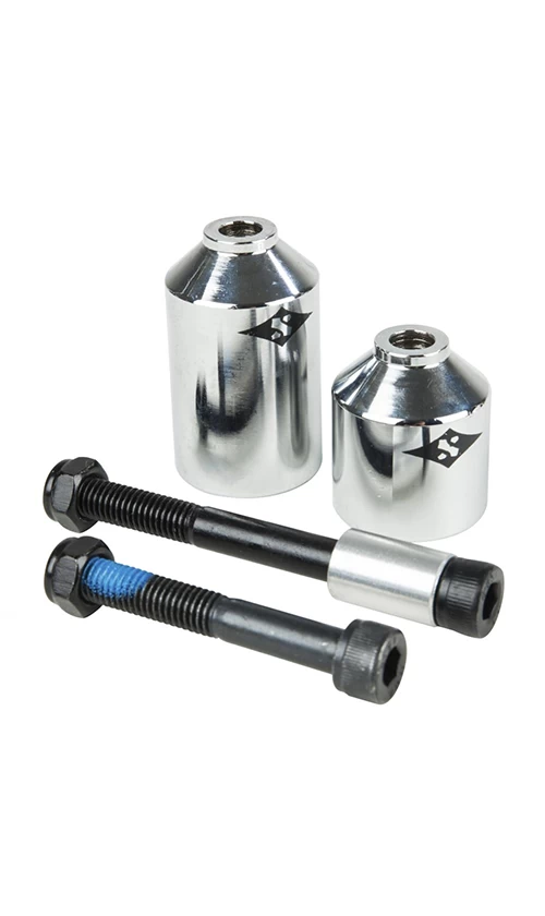 The Sacrifice Sacci Pegs are the heavy-duty model of Sacrifice scooter pegs. Sacci pegs are made from 4130 chromoly which means they are more durable and will put up with a lot more force and impact when grinding rails. Saccis pegs are designed to work onย the AK and Akashi decks. Some decks may require longer axels.ย