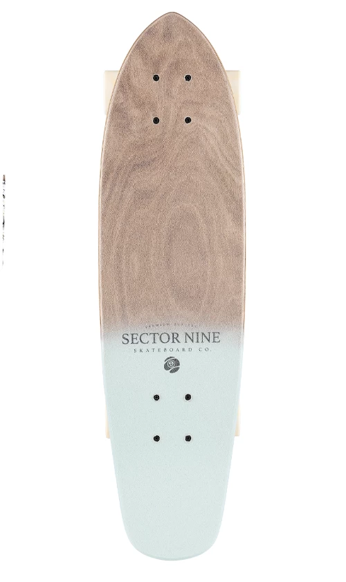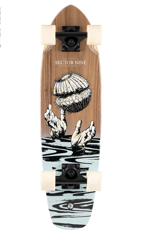 Sector 9 has tapped artist, Curtis Hadzicki, to create these graphics. He drew slight inspiration from ancient Greek mythology with a psychedelic, Southern California twist. The simple graphic silhouettes serve to provide a stark contrast with the Walnut bottom plies. To further expand these boardโs horizons,ย Sector 9 has sprayed the tails and used clear grip to provide one of their most unique collections to date!
