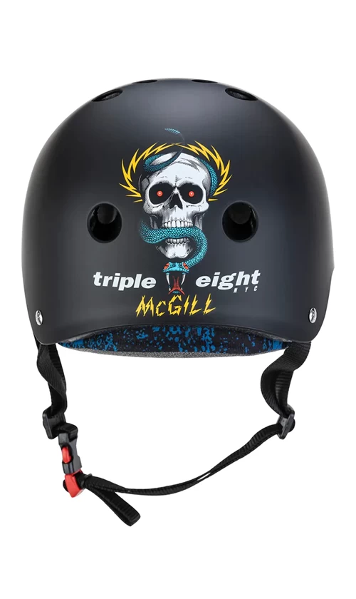 This Triple 8 THE Certified SS Helmet Mike McGill features a combination of high-impact absorbing EPS Foam, dual-density soft foam and Sweatsaver fabric for enhanced protection and comfort, exclusive to this product.
